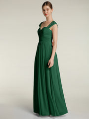 Sweetheart Chiffon Dresses with Lace Cap Sleeves Dark Green