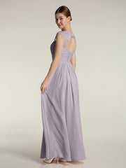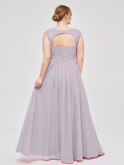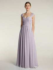 Sweetheart Chiffon Dresses with Lace Cap Sleeves Dusk