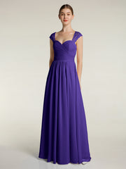 Sweetheart Chiffon Dresses with Lace Cap Sleeves Regency