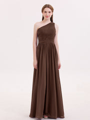 One Shoulder Chiffon Long Bridemaid Dresses-Chocolate