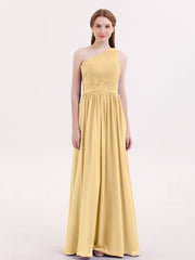 One Shoulder Chiffon Long Bridemaid Dresses-Gold