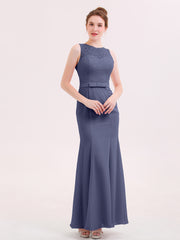 Illusion Neck Mermaid Dress with Open Back-Stormy