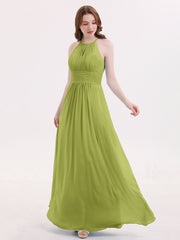 Halter Long Chiffon Dress with Pleated Waist-Clover