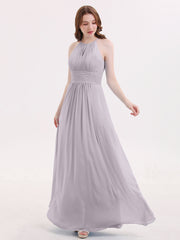 Halter Long Chiffon Dress with Pleated Waist-Dusk