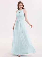 Halter Long Chiffon Dress with Pleated Waist-Mist