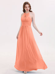 Halter Long Chiffon Dress with Pleated Waist-Sunset