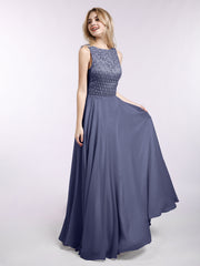 Lace Bodice Chiffon Skirt Long Gown-Stormy