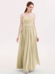 Strapless Cross-pleated Full Length Bridesmaid Gown-Champagne