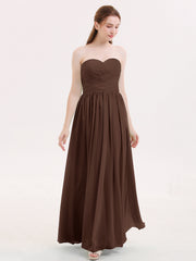 Strapless Cross-pleated Full Length Bridesmaid Gown-Chocolate