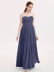 Strapless Cross-pleated Full Length Bridesmaid Gown-Stormy