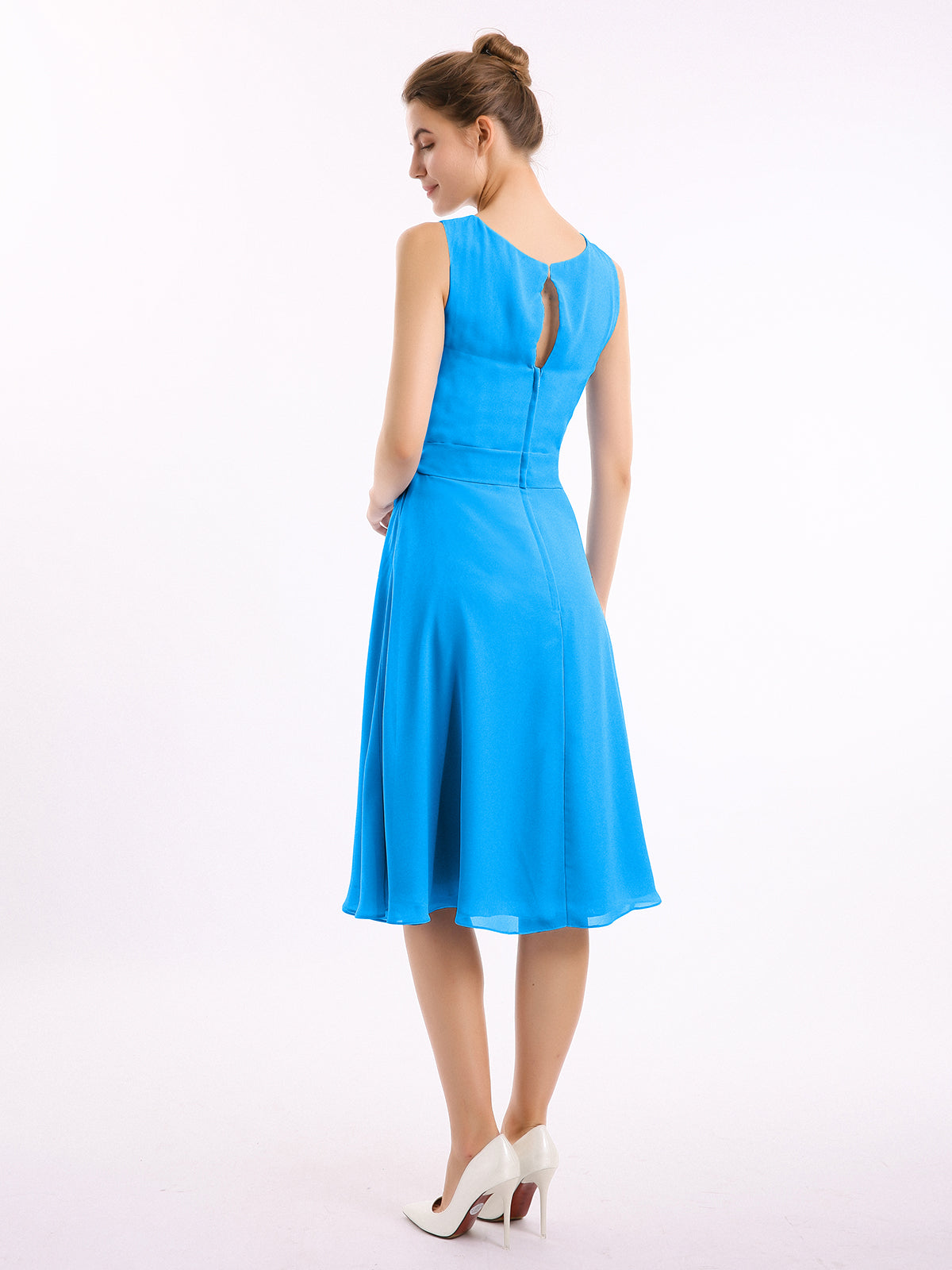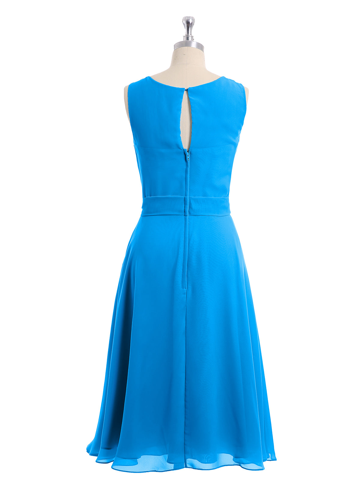 Scoop Neck Chiffon Short Dress with Sash Bow Ocean Blue