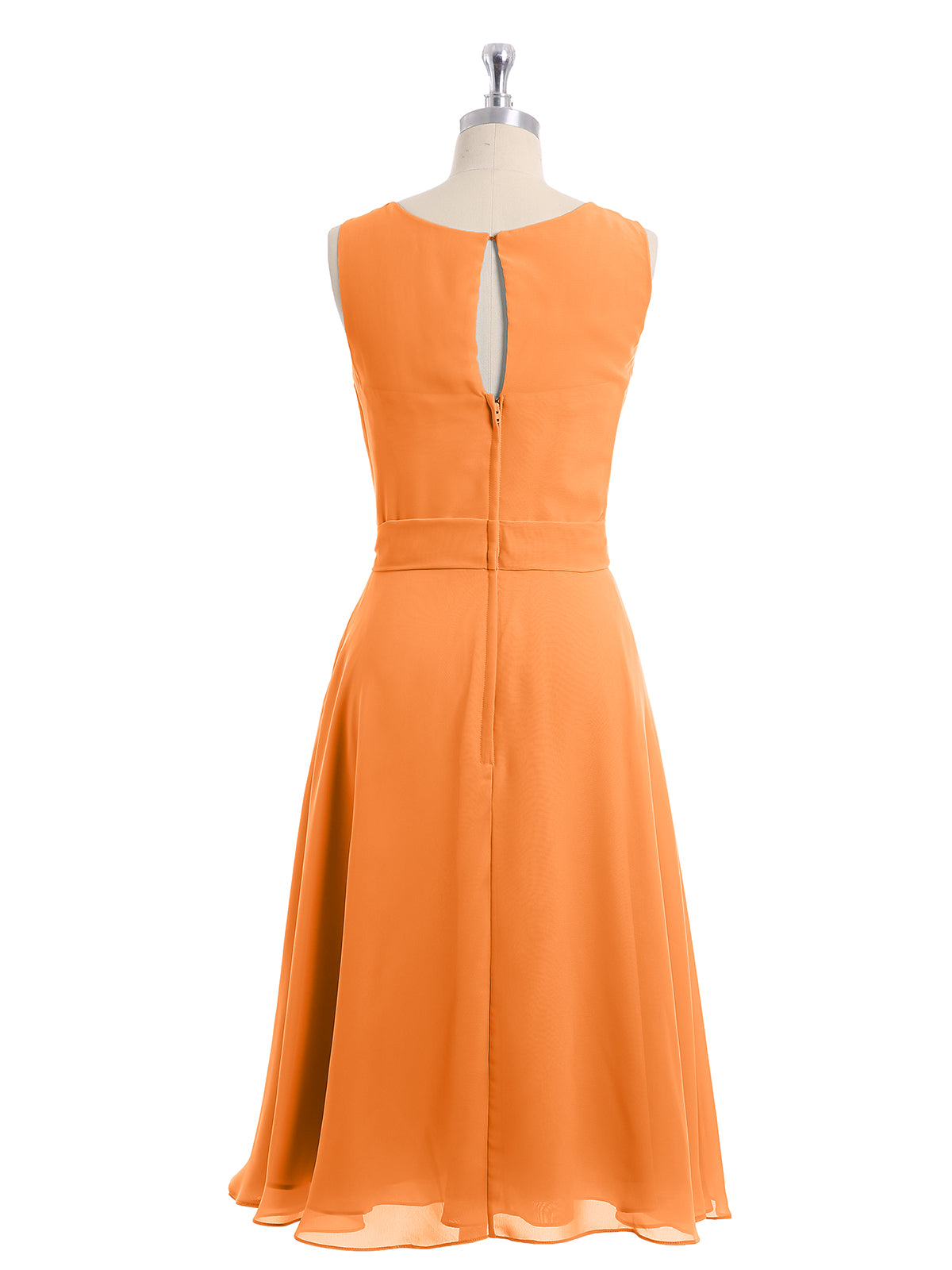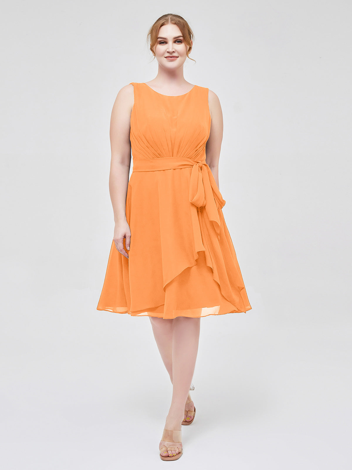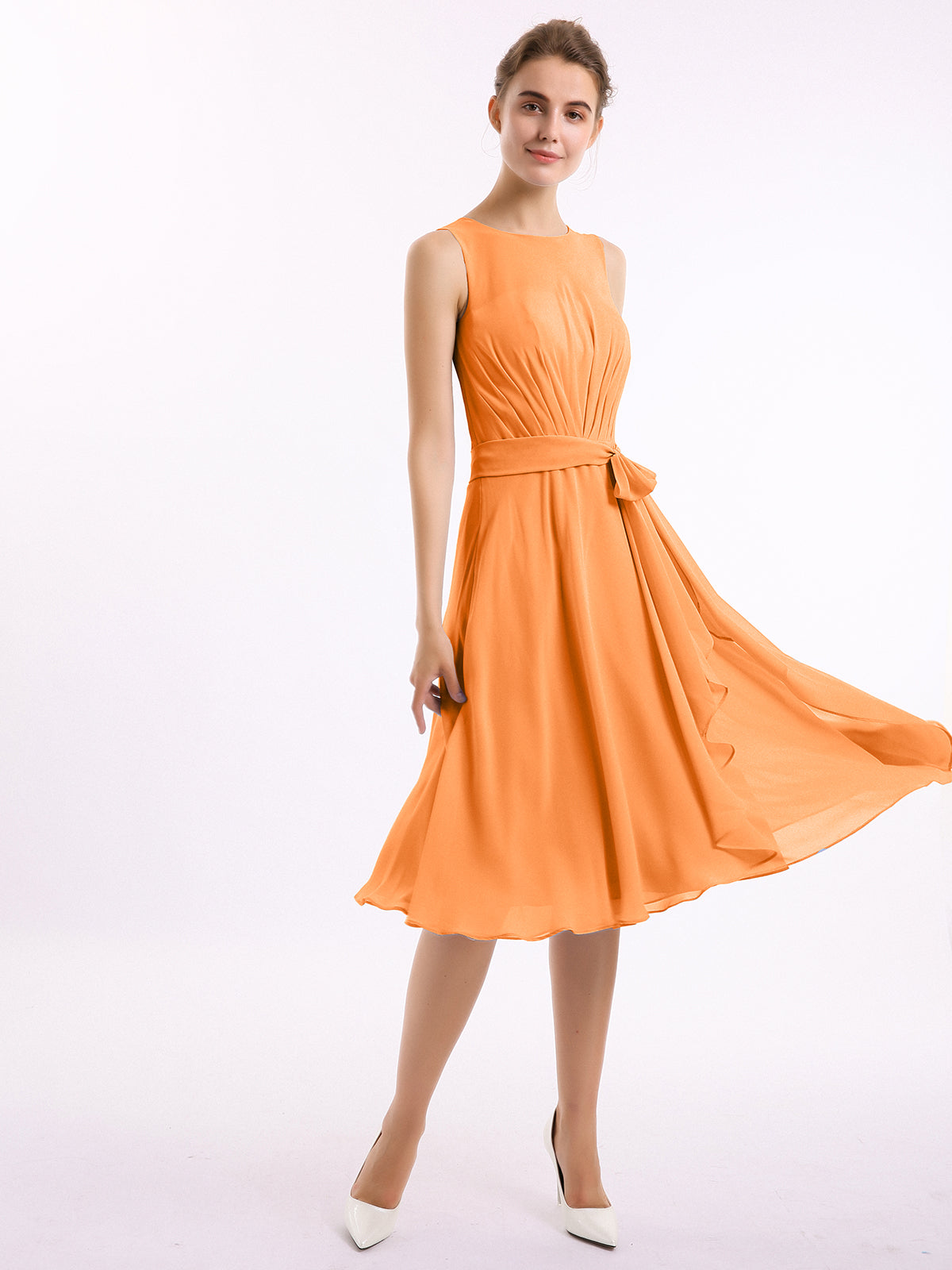 Scoop Neck Chiffon Short Dress with Sash Bow Orange
