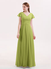 Cap Sleeves Chiffon Long Bridesmaid Dress Clover