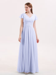 Cap Sleeves Chiffon Long Bridesmaid Dress Lavender
