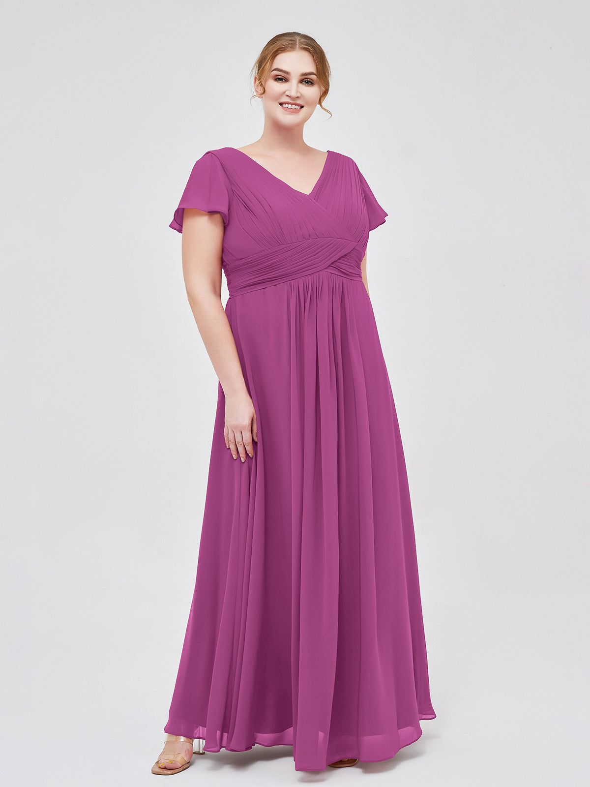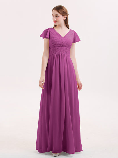 Cap Sleeves Chiffon Long Bridesmaid Dress Orchid