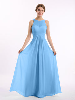 Illusion Sweetheart Neck Empire Chiffon Gown Blue