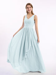 Chiffon V-neck Dress with Cascade Skirt Mist