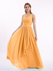 Chiffon V-neck Dress with Cascade Skirt Tangerine