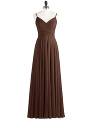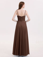 Spaghetti Strap Chiffon Dress with V Neck-Chocolate