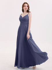 Spaghetti Strap Chiffon Dress with V Neck-Stormy