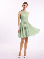 Chiffon Halter Short Bridesmaid Dresses Dusty Sage