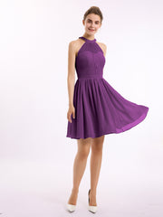 Chiffon Halter Short Bridesmaid Dresses Grape