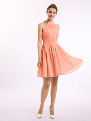 Chiffon Halter Short Bridesmaid Dresses Sunset