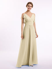 Spaghetti Strap Ruffles V-neck Chiffon Dresses Champagne