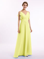 Spaghetti Strap Ruffles V-neck Chiffon Dresses Daffodil