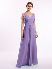 Spaghetti Strap Ruffles V-neck Chiffon Dresses Tahiti