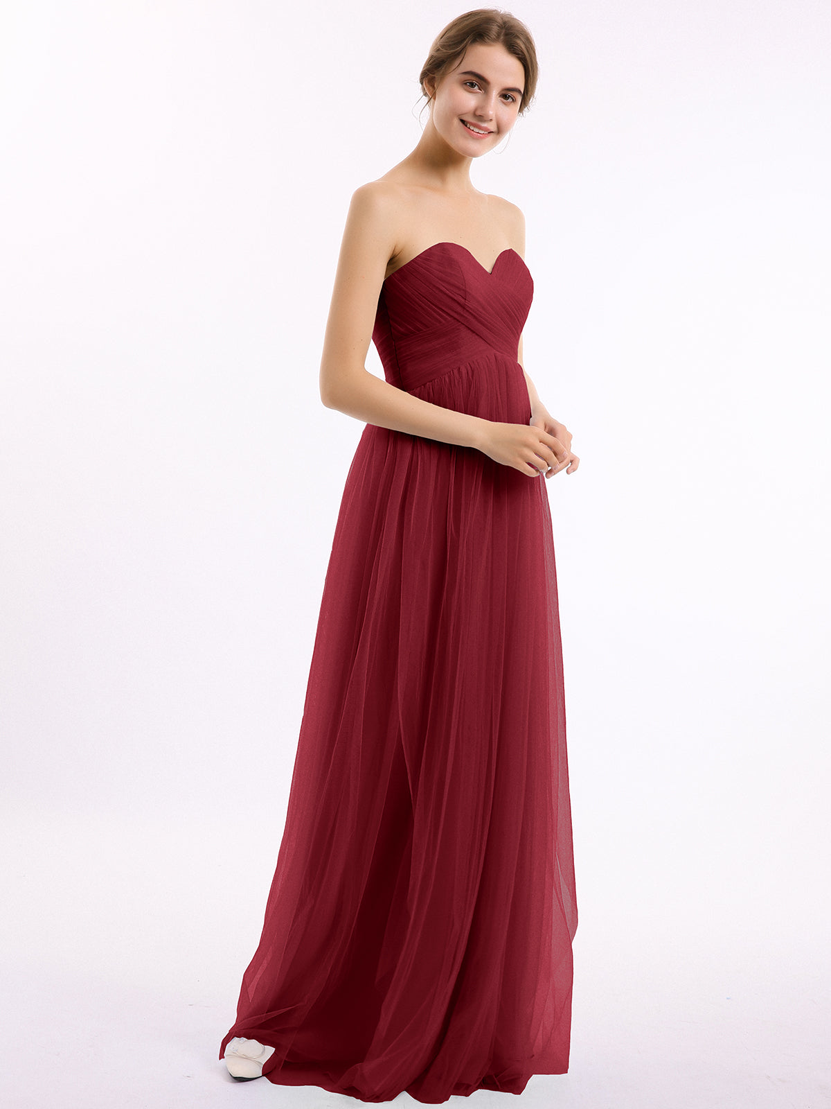 Sweetheart Neck Strapless Empire Tulle Dresses-Burgundy Plus Size
