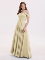 Off the Shoulder Empire Bridesmaid Dresses Champagne
