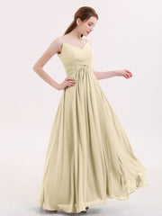 Empire Bridesmaid Gown with Spaghetti Strap-Champagne