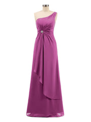 One Shoulder Chiffon Dress with Cascade Skirt-Orchid