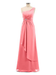 One Shoulder Chiffon Dress with Cascade Skirt-Watermelon