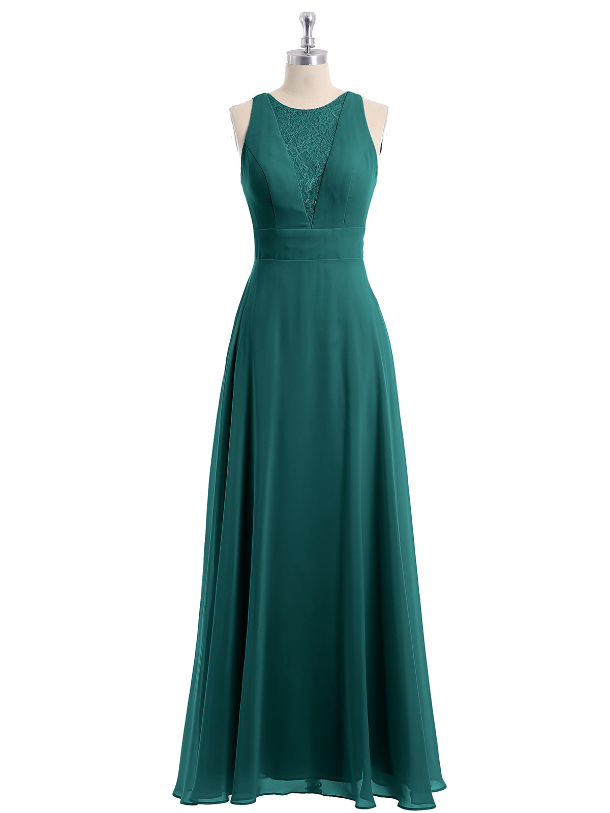 Lace Deep V-neck and Back Chiffon Long Dresses-Peacock Plus Size