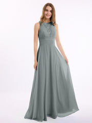 Lace Deep V-neck and Back Chiffon Long Dresses-Steel Grey