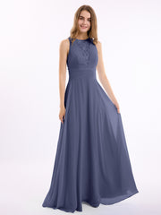 Lace Deep V-neck and Back Chiffon Long Dresses-Stormy