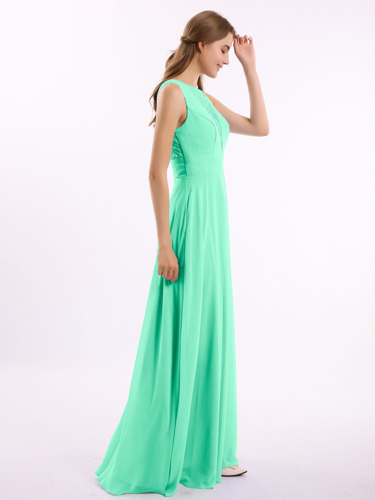 • This long A-line chiffon dress features a sexy deep V neckline. You will look gorgeous and sexy without exposing too much.