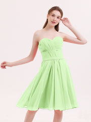 Sweetheart Neck Knee Length Chiffon Bridesmaid Gown-Sage