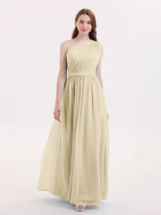 One Shoulder Chiffon Long Bridesmaid Dress Champagne