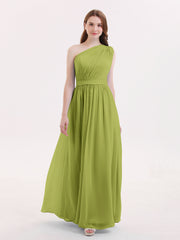 One Shoulder Chiffon Long Bridesmaid Dress Clover
