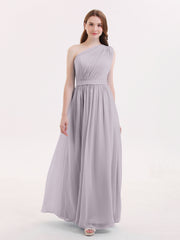 One Shoulder Chiffon Long Bridesmaid Dress Dusk