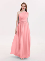 One Shoulder Chiffon Long Bridesmaid Dress Flamingo