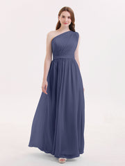 One Shoulder Chiffon Long Bridesmaid Dress Stormy