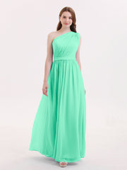 One Shoulder Chiffon Long Bridesmaid Dress Turquoise