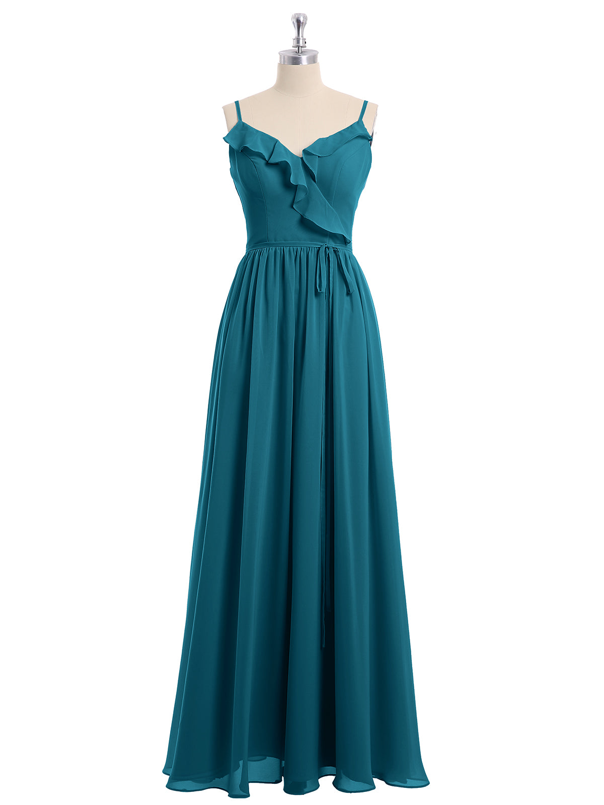 Spaghetti Strap Chiffon Bridesmaid Gowns with V-neck-Ink Blue Plus Size