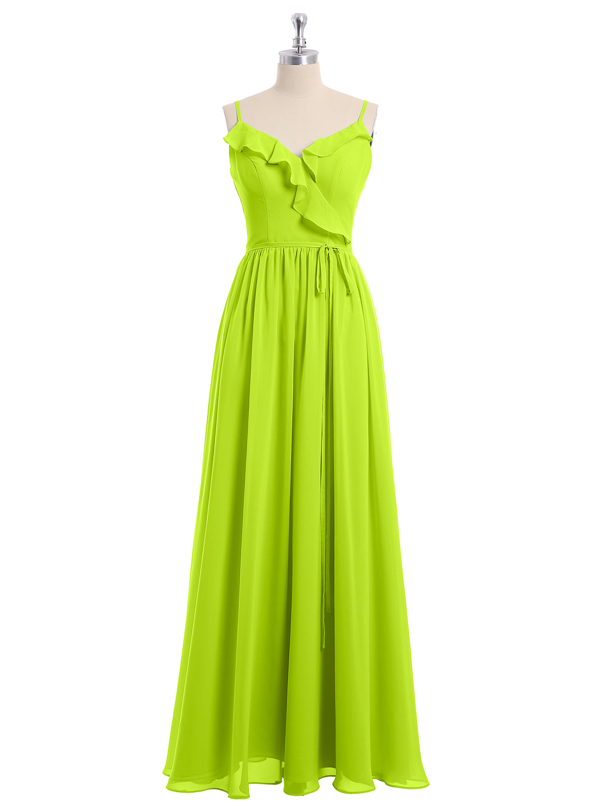 Spaghetti Strap Chiffon Bridesmaid Gowns with V-neck-Lime Green Plus Size