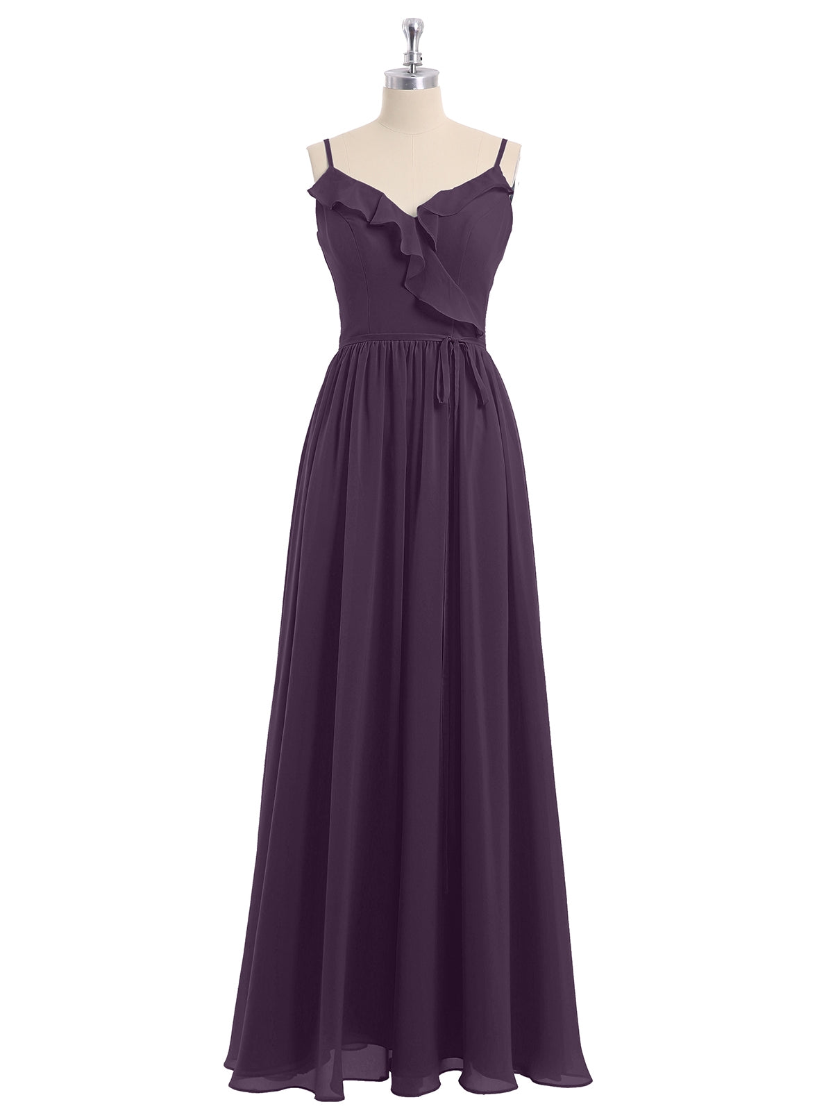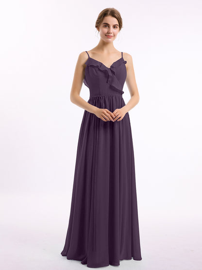 Spaghetti Strap Chiffon Bridesmaid Gowns with V-neck-Plum Plus Size
