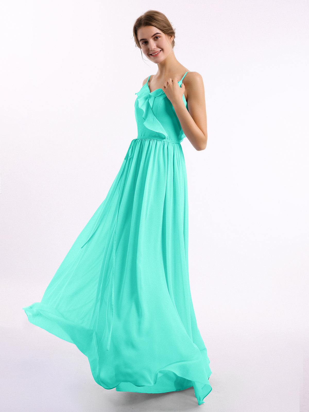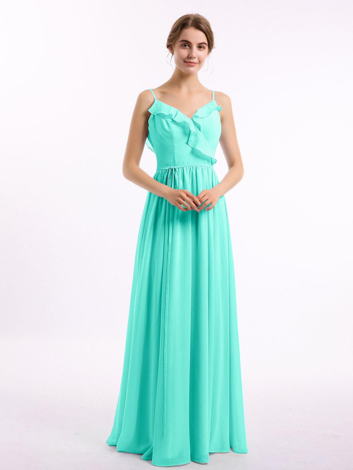 Spaghetti Strap Chiffon Bridesmaid Gowns with V-neck-Spa Plus Size